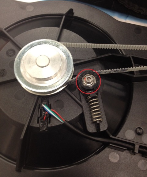 6. Place the belt over the auto-tension bracket and using a 3 mm ball driver or Allen key, secure the auto-tension bracket.
