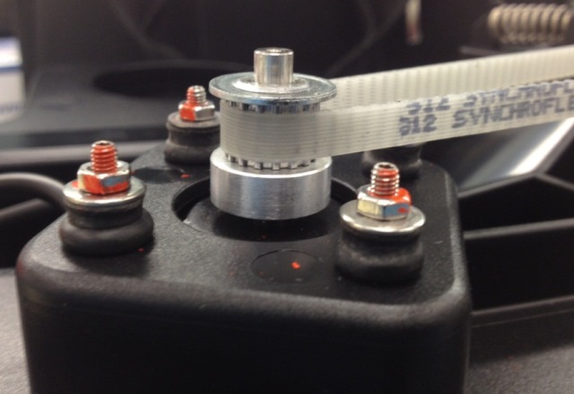 4. Insert the motor into the mount while also connecting the drive belt.