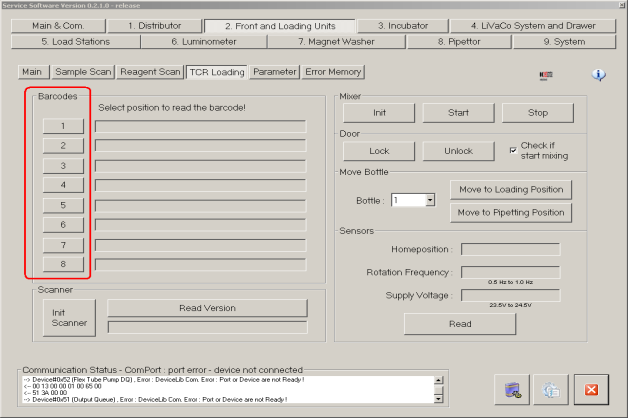 - Click on 2, 4, 6, and 8 under the barcodes section to test that the barcode scanner properly scans each of the locations.
