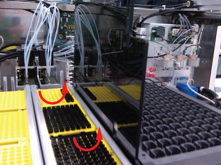 Using Service Software, initialize the sample module and verify the Tip Drawers Sensors. Check the sensors are properly wired and work correctly. Use the Read button to verify the State of the drawer is correct by opening and closing the drawers individually.