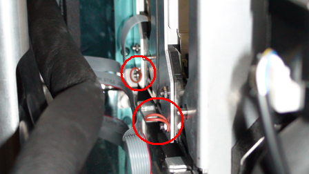 - Use the two 4 mm screws removed during the Removal Procedure to secure the Tip Drawer.