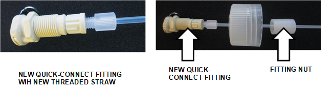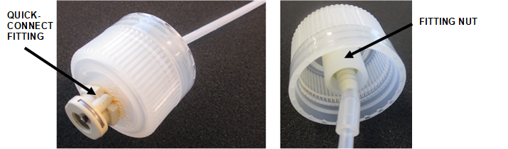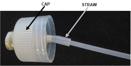 Caution—DO NOT unscrew the straw from the fitting as the connection is torqued according to manufacturer specifications. - Screw the bottle cap with new fitting and straw into the matched bottle.