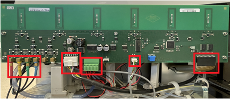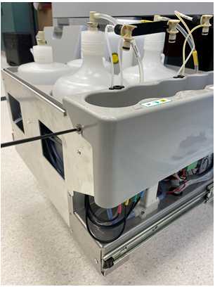 - Disconnect the Buffer and Wash Solution RFID antennae connections (red, yellow, green, and blue connections).