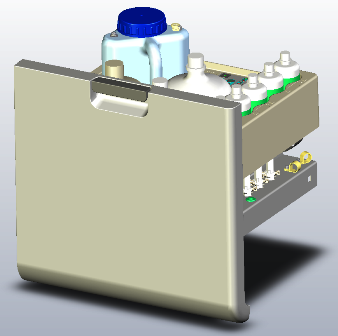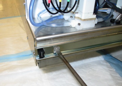 Remove the Universal Fluid Drawer door panel by removing the three 3 mm screws from the sides of the Universal Fluid Door.