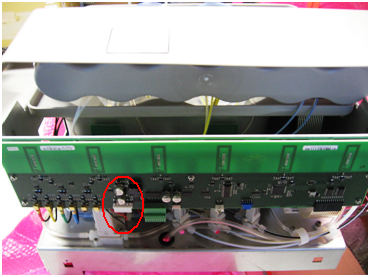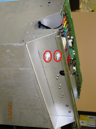 Unplug the Universal Fluid Drawer power cable.- Remove the three 4 mm screws and retaining anchors securing the power cable and tubing.