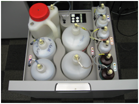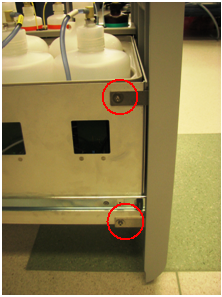 Locate the Universal Fluid Drawer.- Remove all fluid bottles from the Universal Fluid Drawer.
