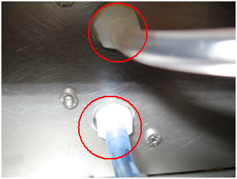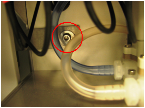 Disconnect the two fluid lines underneath the Universal Fluid Drawer by pulling the tubing off the barb.