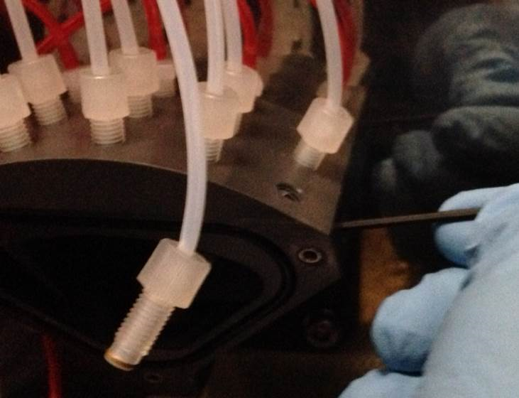 Operation of pumping fluid through tubing to ensure proper and consistent fluid delivery (remove air from the tubing, etc.).. - Observe and ensure there are no leaks or clogs in the manifold or the tubing.