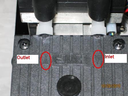 Note—When connecting vacuum tubing, make sure that the exhaust tubing (to muffler) is connected to the exhaust side of the pump heads and the inlet tubing (to manifold) is connected to the inlet side of the pump heads.