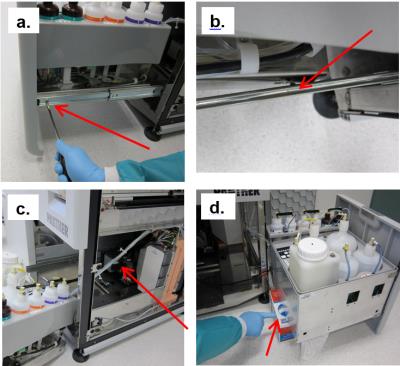- Turn the drawer to the side and move out of the way. Do not stretch or strain any tubing.