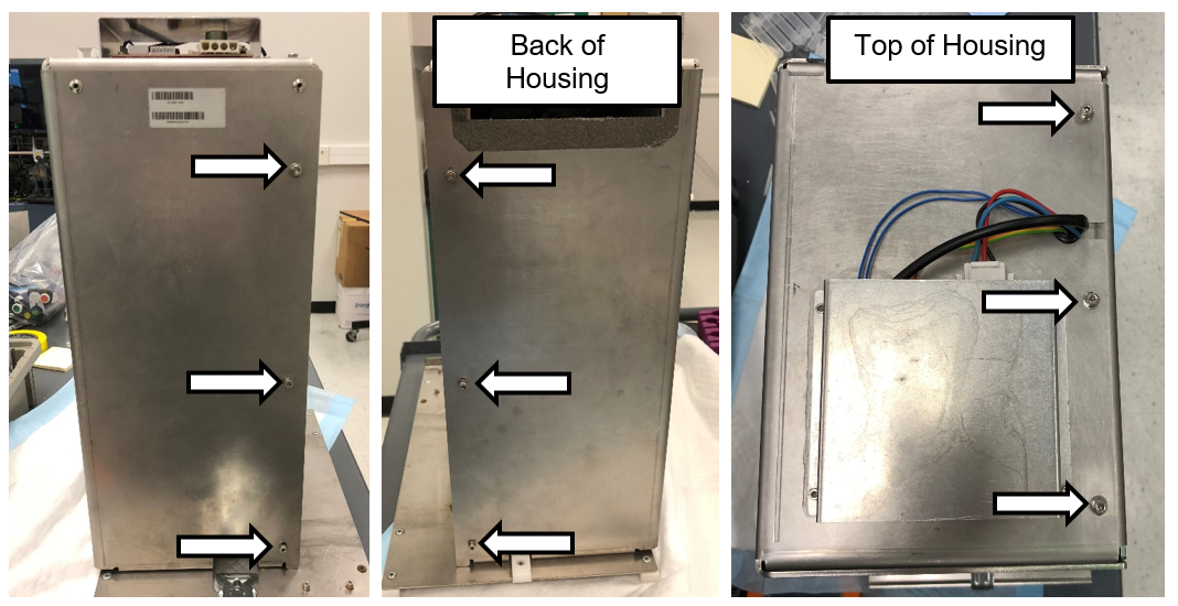 Note—Lay the Vacuum Housing on its back to make it easier to access these screws. Return the housing to an upright position when finished. |