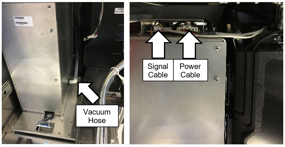 Disconnect the Vacuum Hose, Signal cable, and Power Cable.