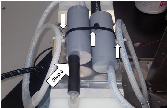 Attach the large fitting of each muffler to the black tubing that connects to the pump.