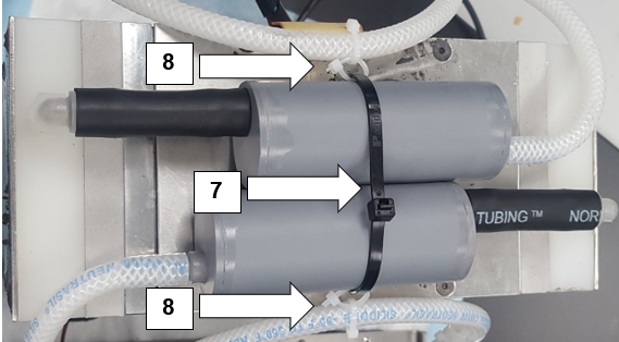 Cut the cable ties that are holding the mufflers to tubing or the pump.