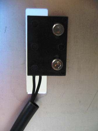 Use four 2.5 mm screws, attach the bottle empty/full sensors to the Waste Drawer. Mounting holes are slotted to allow for vertical adjustment of the sensor. Install the sensor with the fastener located in the center of the mounting slot. The sensor may be adjusted if necessary.