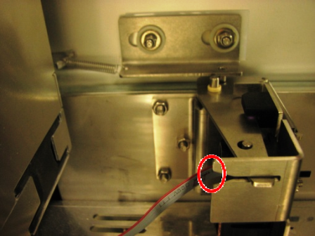 Connect the flex cable to the Waste Drawer lock solenoid as per orientation noted during the removal procedure.