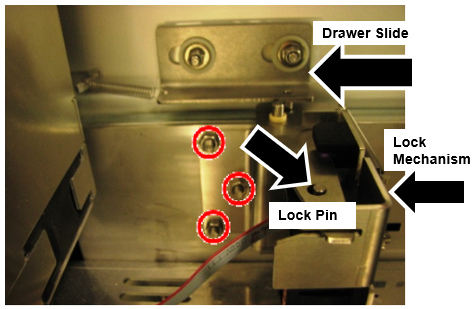 - Adjust and align the Drawer slide or lock mechanism as necessary to ensure the lock mechanism sits above the lock pin