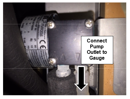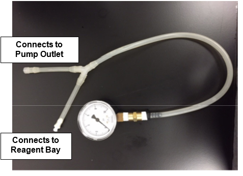 Connect the gauge to the Pump Outlet and the Reagent Bay tube.