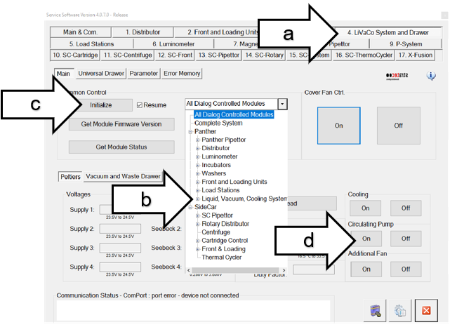 - Using Service Software, turn on the Cooling Pump (see step 4).