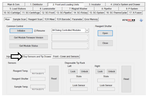 Using Service Software under the 2. Front and Loading Units tab, select the Bay Sensors and Tip Drawer tab.