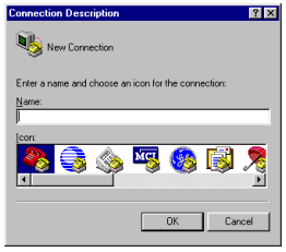 At the Connection Description window, give the connection an arbitrary name and select an icon. The actual name of the connection and the icon selection does not affect the outcome of this procedure.