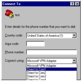 At the Connect to window, select the correct COM port being used by the Serial-to-USB adapter.