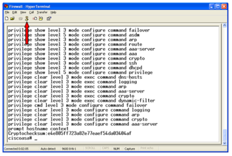 - Close HyperTerminal and disconnect the FSE laptop from the firewall.