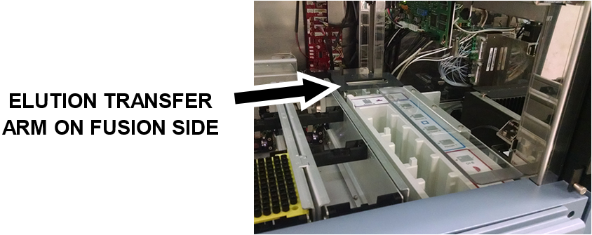 Open the Fusion Module Canopy Door and make sure that the Elution Buffer Transfer Arm is positioned on the Fusion Module side (manually move it if necessary).