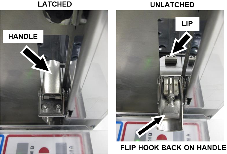 On each latch, flip the hook back onto the handle as shown so that it does not catch the lip when the Fusion Module is moved away from the Panther System.