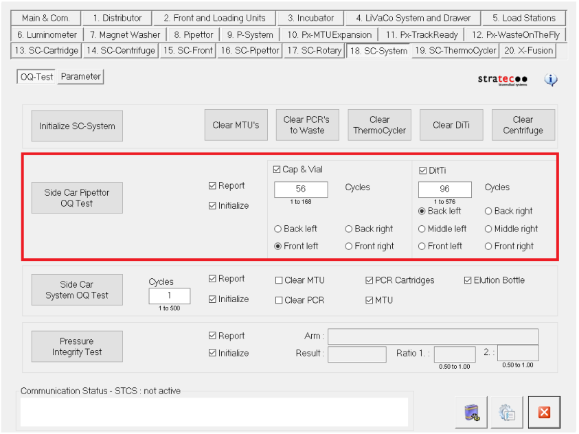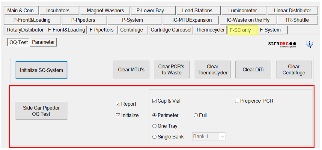 - From the F-SC-System tab, select Side Car Pipettor OQ-Test.