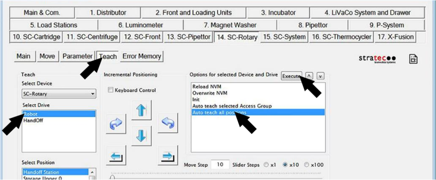 and then under Select Drive, select Robot. - Select the Auto teach all positions option and click Execute.