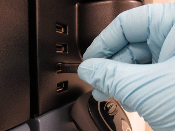 - Remove the old Hand-held Barcode Scanner and unplug it from the USB Hub.