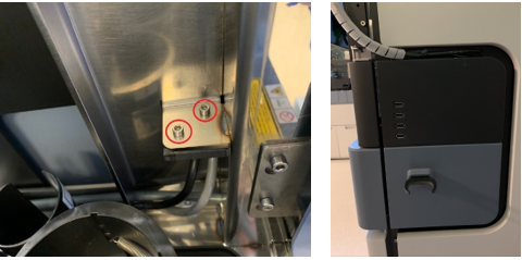 - Install the NEW Hand-held Barcode Scanner Bracket with the 2 screws from the old bracket.