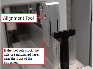 | Note—If the Input Queue Rail Alignment Tool does not slide freely along the rails, the rails will need alignment. |
