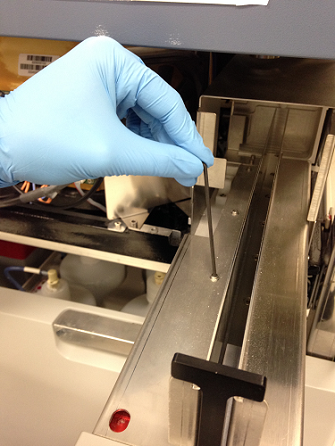 | Note—The Mid Bay drawer may need to be opened in order to access screw 1. Remove the Luminometer inject before opening the Mid Bay drawer. |