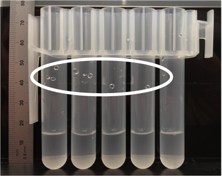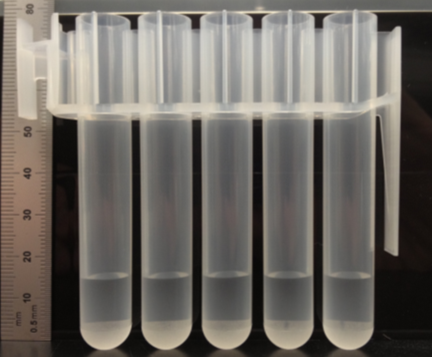 - Avoiding the walls of the MTU tubes, with a manual pipettor, dispense 1 mL of DI water into all 5 MTU tubes.