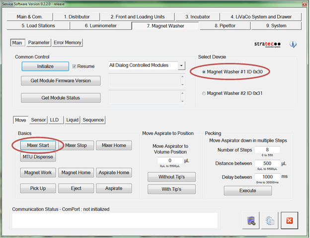 - In Service Software, select Magnet Washer 1 or 2, depending upon which station is being tested.