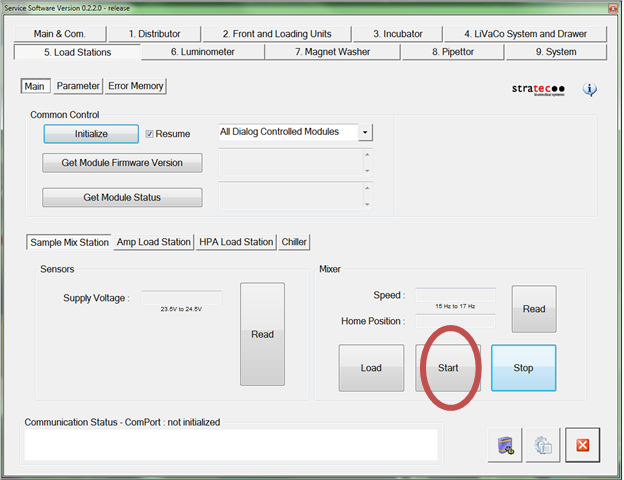 - in Service Software, select the appropriate Load Station (Sample Mix Station, AMP, or HPA