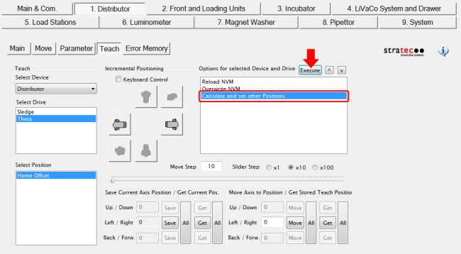 - Once the Distributor is parallel to the Luminometer, press Save (under Save Current Axis Position) to save the Theta position.