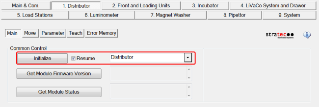- Re-initialize the Distributor. (Always re-initialize before individually teaching a module. This prevents potential X-Axis positioning drifts that can occur between modules.)