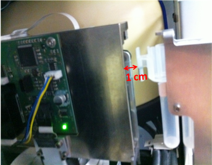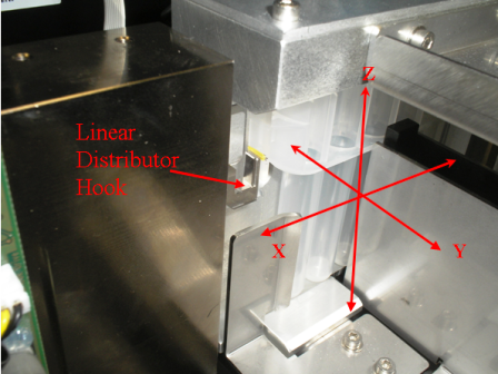 Move the Distributor in the X-Direction so that the head is approximately 1 cm from the MTU.