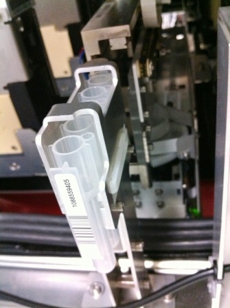 Place a marked MTU (as described in the Input Queue teaching section) in the Service Queue, with the clip between tubes 2 and 3.
