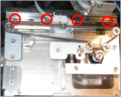 Loosen each of the 4 distributor hook linear bearing rail screws.