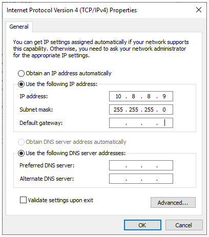 Static IP: 10.8.8.9