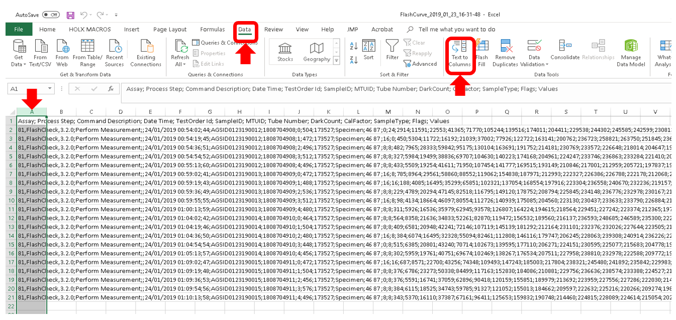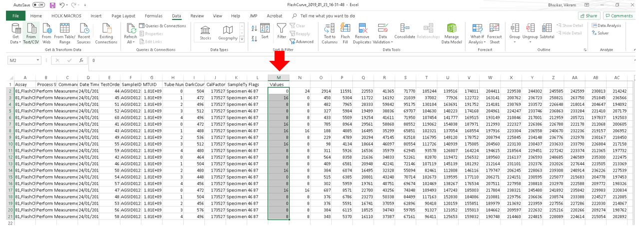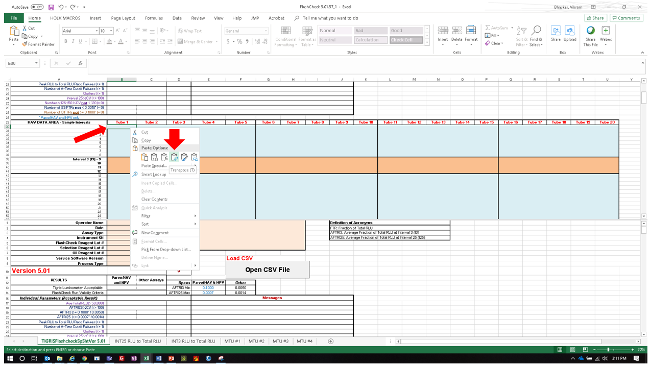Once this data is on the clipboard, navigate to the open FlashCheck Analysis spreadsheet v5.01