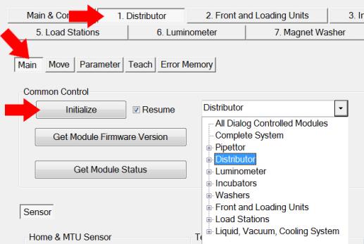 - Select Distributor from the Common Control dropdown menu and click Initialize.