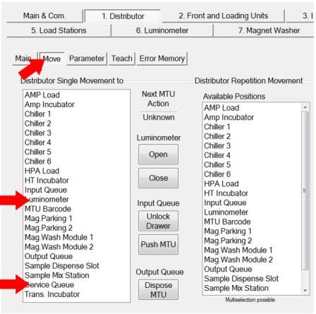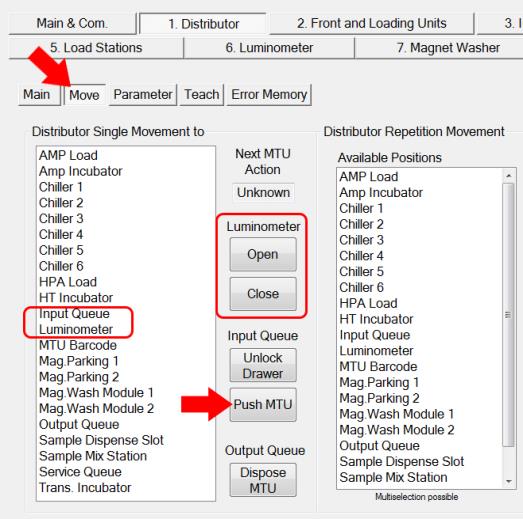 - Double-click Luminometer on the Distributor Single Movement List to pick the MTU.