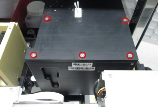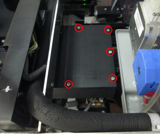 With the Service Drawer about half-way closed, remove the other 5 screws that can be seen between the Carousel and the peristaltic pump.