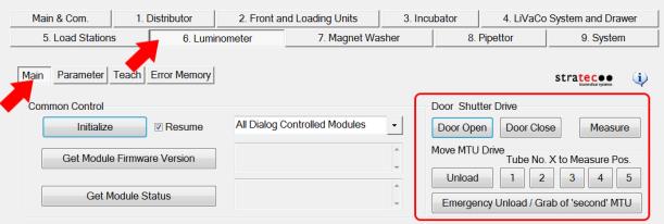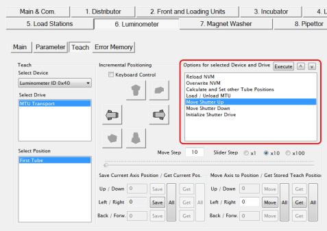 - Under “Move MTU Drive”, select Tube No. 1 and then Measure. Verify the MTU does not move during shutter movement.