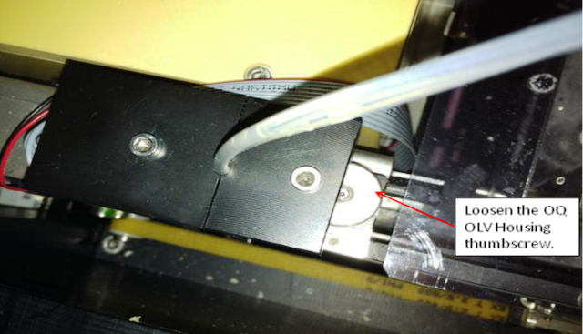 - Tighten the Output Queue OLV Housing thumbscrew.